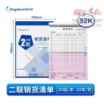 金蝶(kingdee)二联竖版销货清单 无碳复写单据送货单 财会用品10本装 XH08ASKU:yzwhyp858110