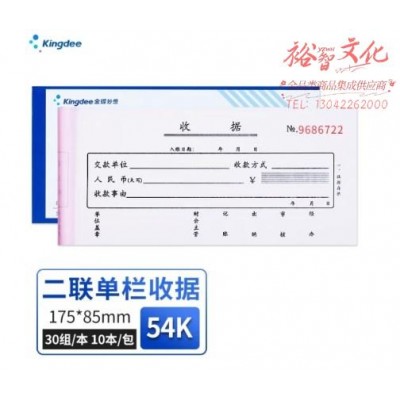 首页 > 办公用品 > 文具 > 金蝶 kingdee 二联单栏收据单 无碳复写收款收据 打印手写收据单样本单54K 175*85mm 20组/本 10本/包 SJ08ASKU:yzwhyp858123