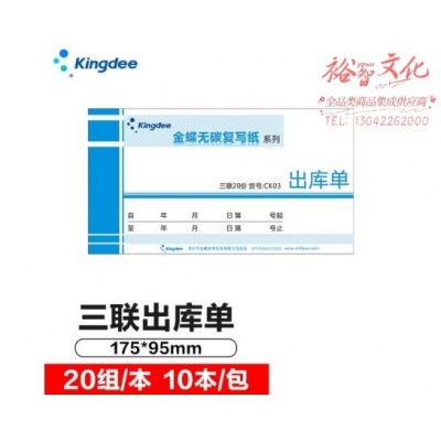 金蝶(kingdee)三联出库单据 无碳复写收款收据 打印手写收据单样本单 175*95mm 10本/包 CK03SKU:yzwhyp858131