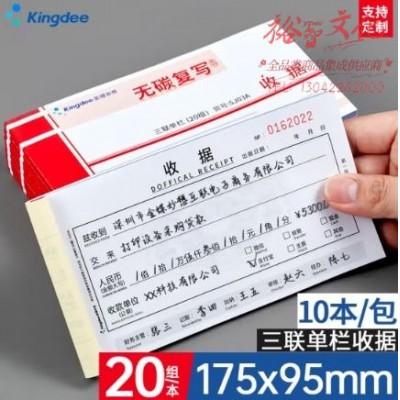 金蝶(kingdee)三联单栏收据单 无碳复写收款收据 打印手写收据单样本单 175*95mm 10本/包 SJ03ASKU:yzwhyp858133