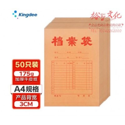 金蝶(kingdee)50只A4档案袋牛皮纸175g加厚 侧宽3cm 文件袋 资料袋 合同文件牛皮收纳袋 DAD301SKU:yzwhyp858231