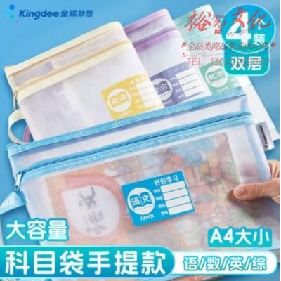 金蝶(kingdee)双层网纱科目分类袋作业袋文件袋 开学季必备学科分类书袋书本收纳袋试卷袋拉链资料袋4只装 W1204SKU:yzwhyp858260