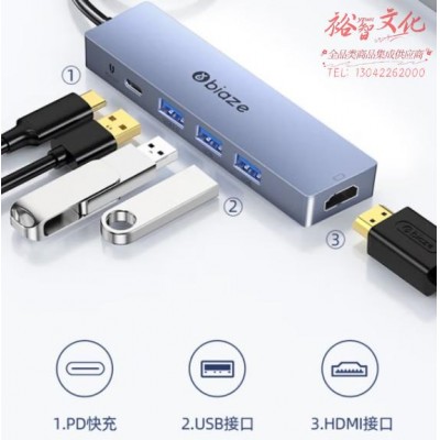 毕亚兹 Type-C扩展坞 USB-C转HDMI转接头4K投屏PD充电 R53-5口SKU:yzwhyp858293