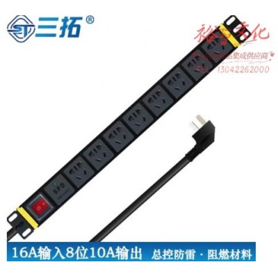 三拓 TS8208机柜PDU电源插座插排16A输入8位10a输出新国标孔开关SPD防雷模块2.5平方线芯4000WSKU:yzwhyp858547