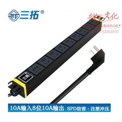 三拓 TS8108机柜PDU插座电源插排10A输入8位10a输出新国标孔SPD孔防雷模块1.5平方线芯2500WSKU:yzwhyp858549