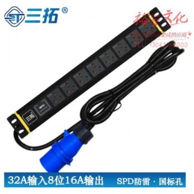 三拓 TS8202 机柜PDU电源插座机房插排32A国标孔8位16A国标孔SPD防雷模块4平方线SKU:yzwhyp858577