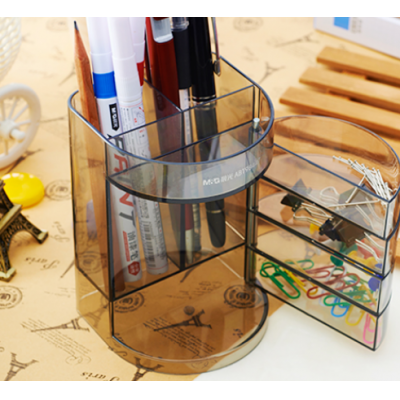 晨光(M&G)98447-87 时尚黑透四层组合型塑胶笔筒 桌面文具收纳盒