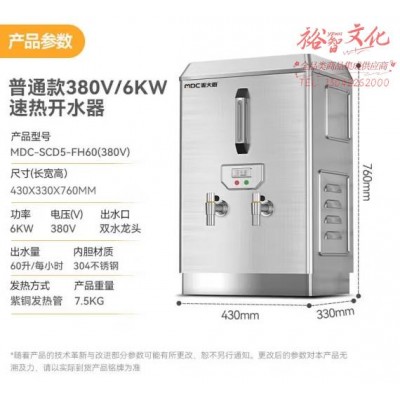 麦大厨 开水器商用开水机烧水器电热热水器公司用饮水机热水机热水箱60L/h MDC-SCD5-FH60(380V)SKU:yzwhyp859549