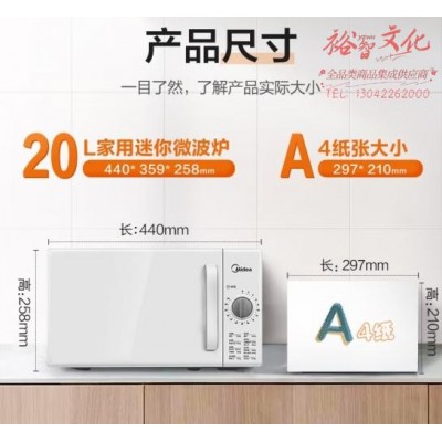 美的(Midea)快捷家用微波炉 家用小型迷你 360°转盘加热 旋钮操控 易洁内胆 时间调节20升(PM2000)SKU:yzwhyp859915