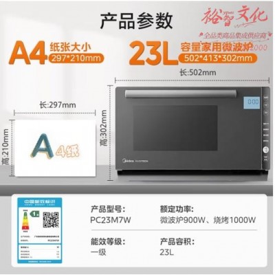 美的(Midea)微碳系列 900W智能变频 智能微波炉烤箱一体机 一级能效 湿度感应 双模烧烤(PC23M7W)SKU:yzwhyp859927