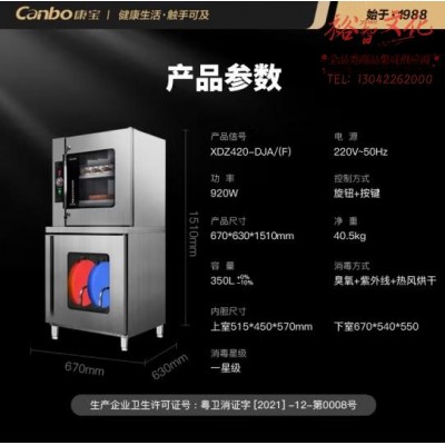 康宝(Canbo)商用消毒柜 大容量立式 臭氧紫外线双开门厨房刀具砧板消毒机碗筷消毒碗柜 XDZ420-DJA(F)SKU:yzwhyp860087