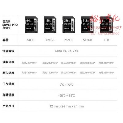 雷克沙(Lexar)v60sd卡相机内存卡高速4K单反相机存储卡 SILVER PLUS 读205MB/s 128GBSKU:yzwhyp860356