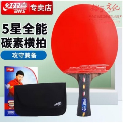 红双喜DHS狂飚五星乒乓球拍横拍碳素单拍双面反胶全能型R5002C带拍套SKU:yzwhyp860615