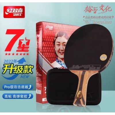 红双喜DHS狂飚七星乒乓球拍横拍比赛柚木面材 碳素H7002赠球SKU:yzwhyp860623