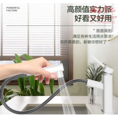 四季沐歌(MICOE)面盆水龙头 白色抽拉式漱口浴室卫生间洗手间洗脸台盆冷热水龙头 创新漱口 抽拉双水花(皓月白)SKU:yzwhyp860940