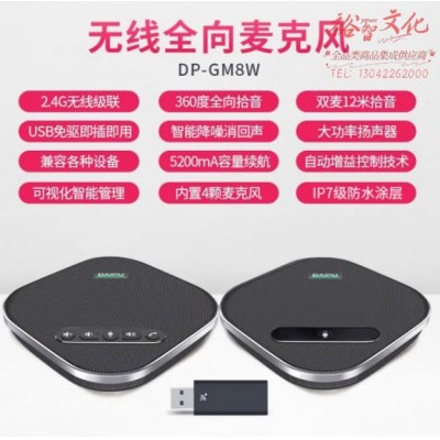 首页 > 广播、电视、电影设备 > 组合音像设备 > 会议、广播及音乐欣赏系统 > 戴浦(DAIPU)DP-GM8W视频会议无线全向麦克风(一拖二扩展麦级联)12米拾音 2.4G无线连接 适合40-80㎡会议室SKU:yzwhyp861959