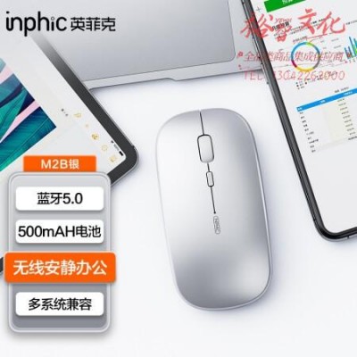 英菲克(INPHIC)M2B可充电蓝牙鼠标 办公鼠标【无接收器】超薄便携 蓝牙5.0笔记本IPAD通用无线 银色SKU:yzwhyp862361
