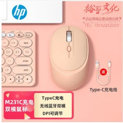 惠普(HP)鼠标M231C无线蓝牙双模可充电鼠标 蓝牙5.0/4.0 便携办公鼠标 多模切换智能休眠手感舒适 奶茶粉SKU:yzwhyp862493