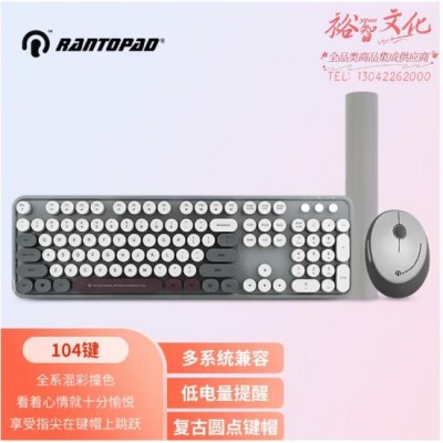 镭拓 Rantopad RF104无线键盘鼠标套装 办公键鼠套装 便携 仿古圆点键盘 鼠标 鼠标垫套装 寂静灰SKU:yzwhyp862525