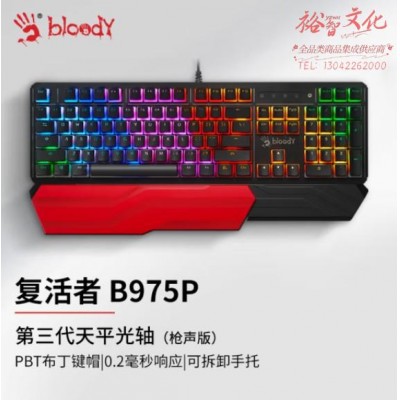 双飞燕(A4TECH)B975P橙光轴 枪声版 有线机械键盘 血手幽灵 三代光轴电竞键盘 带手托 PBT键帽 布丁黑SKU:yzwhyp862540