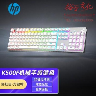 惠普(HP) 真机械手感键盘 游戏有线背光电竞吃鸡笔记本台式电脑外设办公复古圆键朋克键帽键盘键鼠套装 K500Y彩虹白【方键帽】SKU:yzwhyp862597