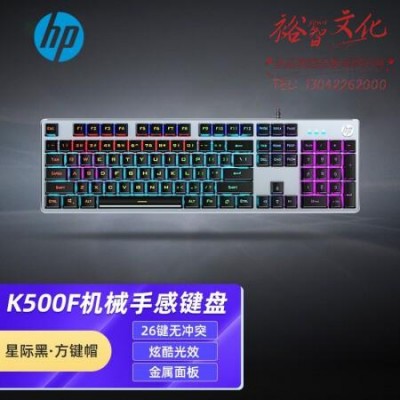 惠普(HP) 真机械手感键盘 游戏有线背光电竞吃鸡笔记本台式电脑外设办公复古圆键朋克键帽键盘键鼠套装 K500Y星际黑【方键帽】SKU:yzwhyp862612