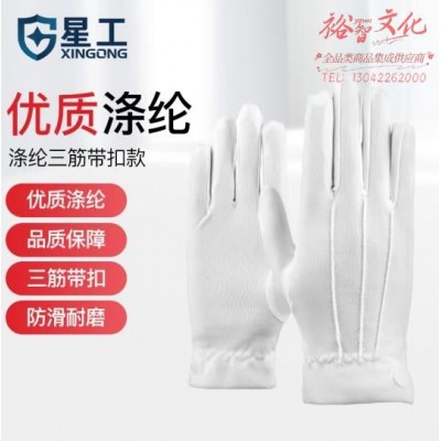 星工(XINGGONG)三筋白手套 涤纶带扣文玩礼仪接待开车劳保手套 10付 XGS-P3SKU:yzwhyp862808