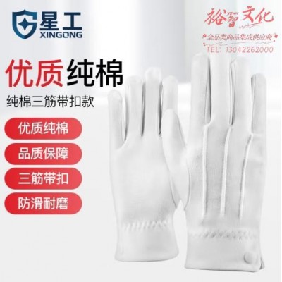 星工 白手套 三筋纯棉带扣礼仪文玩防滑透气劳防工作用 10付 XGS-P10SKU:yzwhyp862810