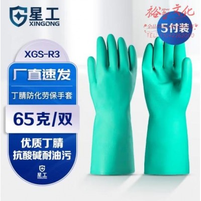 星工 丁腈防化手套耐油污耐酸碱防滑防水工业手套劳保5双装XGS-R3SKU:yzwhyp862944