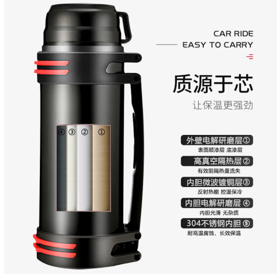 富光拾喜 保温壶户外大容量水壶男车载旅行壶不锈钢运动壶2L 黑色升级款.SKU:yzwhyp863127