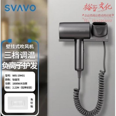 瑞沃(SVAVO) 电吹风机大功率1800W壁挂式负离子吹风筒酒店宾馆干发器免打孔 WIS-19H01钛金灰【简易支架】SKU:yzwhyp863235