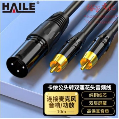 海乐(Haile)卡侬公头转双莲花头 RCA转莲花头调音台音响箱功放卡农线10米黑色 HT-KL12-10MSKU:yzwhyp863427