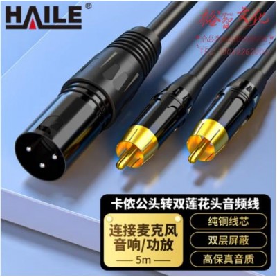 海乐(Haile)卡侬公头转双莲花头 RCA转莲花头调音台音响箱功放卡农线5米黑色 HT-KL12-5MSKU:yzwhyp863429