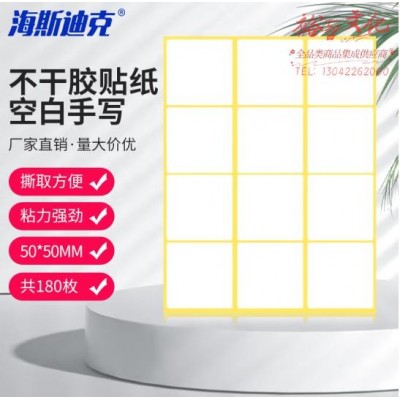 海斯迪克 HK-5138 标签贴 A5不干胶贴纸 白色不干胶小标签 空白可粘贴姓名号码手写 50*50mm(180枚/组) 2组装SKU:yzwhyp863527