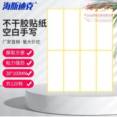 海斯迪克 HK-5138 标签贴 A5不干胶贴纸 白色不干胶小标签 空白可粘贴姓名号码手写 38*100mm(120枚/组) 2组装SKU:yzwhyp863528