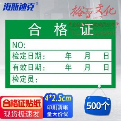 海斯迪克 合格证标签贴纸 绿色质检标签 不干胶通用纸卡 40*25mm(500个/组) HKT-213 2组装SKU:yzwhyp863530