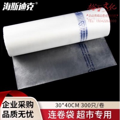 首页 > 用具 > 其他厨房用具 > 海斯迪克 加厚连卷袋 超市专用保鲜断点式塑料袋 30*40cm 300只/卷 HKT-243SKU:yzwhyp863549