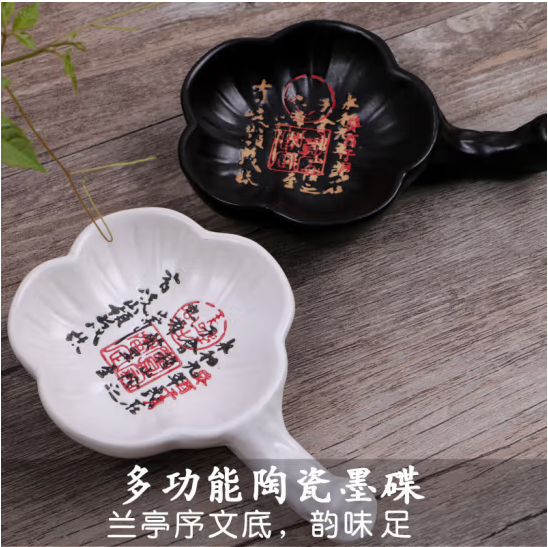 御宝阁陶瓷墨碟盛墨汁用墨池墨笔搁笔舔小水碟墨蝶文房四宝盒墨盘笔洗毛笔架创意砚台初学者学生国画书法用具 兰亭序黑色 墨碟(可选白色)SKU:yzwhyp863564