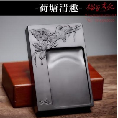 御宝阁 非遗原石砚台安徽歙砚文房四宝用品毛笔书法专用磨墨笔砚砚盘墨池墨盘墨海送礼石砚台礼盒装木盒 荷塘清趣SKU:yzwhyp863593