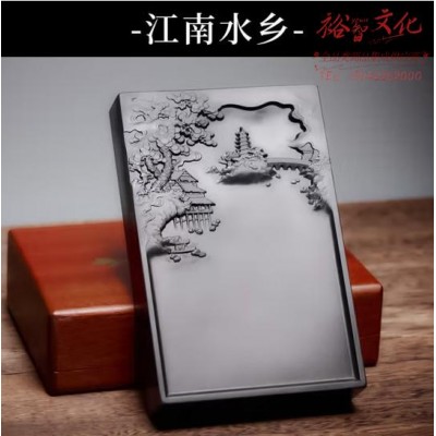 首页 > 办公用品 > 文具 > 御宝阁 非遗原石砚台安徽歙砚文房四宝用品毛笔书法专用磨墨笔砚砚盘墨池墨盘墨海送礼石砚台礼盒装木盒 江南水乡SKU:yzwhyp863596