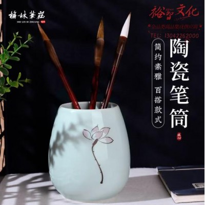 梅林笔庄F-014陶瓷笔筒文房四宝书法用品笔洗毛笔收纳创意中国风书房桌面摆件SKU:yzwhyp863657