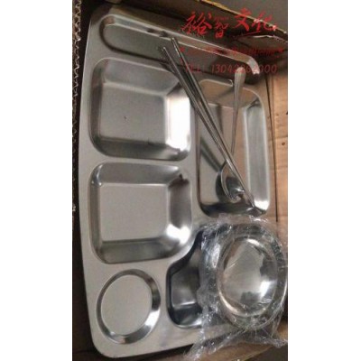 首页 > 用具 > 餐具 > 304不锈钢餐盘加厚长方成人快餐盘五格套装(碗勺筷子)SKU:yzwhyp863667