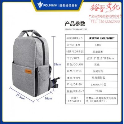 沃尔夫冈(WOLFGANG) 摄影背包单反相机包大容量 微单单反双肩相机背包户外便携包 SJ80 灰色双肩包SKU:yzwhyp863832