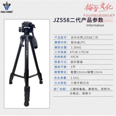 首页 > 办公设备 > 镜头及器材 > 沃尔夫冈(WOLFGANG)三脚架适用于佳能单反微单相机适用5d4 6d2 90d 200dII m200 m6II 200D M200 M6 R50 R10相机支架 JZ558(高170CMSKU:yzwhyp863856