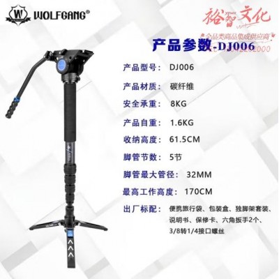 沃尔夫冈微单单反相机摄像机碳纤维独脚架 支架 单脚架液压阻尼云台套装 碳纤维独脚架JD006 标配SKU:yzwhyp863869