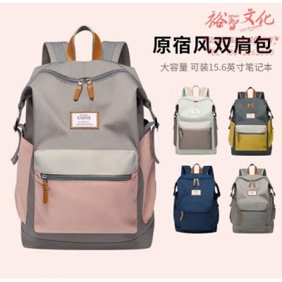 第九城(V.NINE) 双肩包女士防泼水旅行背包大容量15.6英寸电脑包校园情侣高中生大学生上课简约书包男孩 粉配灰SKU:yzwhyp863983