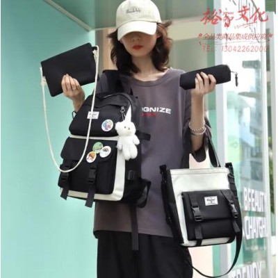 首页 > 装具 > 手提包、背包 > 第九城V.NINE 双肩包男孩女生卡通印花书包四件套帆布休闲背包校园中小学生书包 VD1BV33884J 黑色SKU:yzwhyp864004