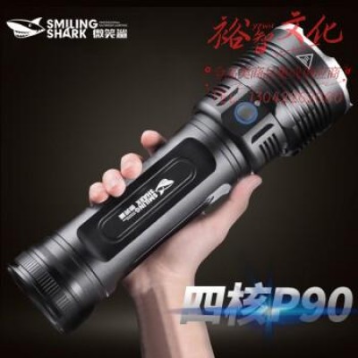 微笑鲨e71b P90强光手电筒超亮远射大功率多功能可充电户外家用防水变焦探照灯SKU:yzwhyp864073
