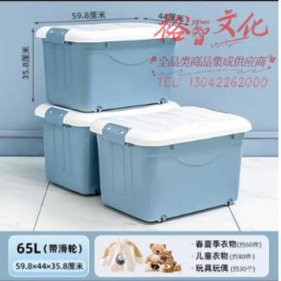 禧天龙塑料衣物收纳箱杂物整理箱65L 蓝色 3个装 带轮SKU:yzwhyp864221