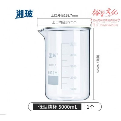 湘玻 玻璃烧杯低型带刻度透明量杯加厚高硼硅耐高温实验器材 【5000mL】 高硼硅玻璃SKU:yzwhyp864382
